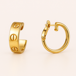 This stylish Valencia earrings radiate strength and elegance. The design combines a modern look with a touch of edge through the iconic screw details. The half-open hoops are perfect for giving any outfit that extra touch, whether you choose a casual or formal look. Made from high-quality materials for a refined finish and long-lasting shine. A must-have for any jewelry lover!